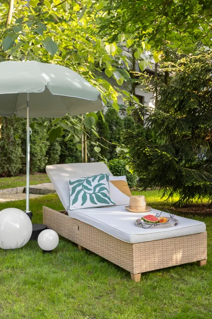 Leżak Madera Naterial w odcieniu beżowym to doskonały wybór dla osób ceniących sobie komfort podczas relaksu na świeżym powietrzu. Regulowane oparcie pozwala dopasować jego ustawienie do aktualnych potrzeb – niezależnie od tego, czy chcesz poczytać książkę, czy uciąć sobie drzemkę na słońcu. Leżak został wykonany z żywicy polietylenowej (technorattanu), o przyjemnej w dotyku, półokrągłej strukturze, która realistycznie imituje naturalny ratan. Poduszki są miękkie i wygodne, uszyte z tkaniny poliestrowej odpornej na promienie UV, wilgoć i niekorzystne warunki pogodowe, a ich poszewki można łatwo zdjąć w celu odświeżenia.