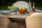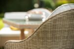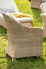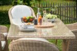 Aby zjeść posiłek na świeżym powietrzu lub po prostu zrelaksować się na słońcu, fotel ogrodowy Medena jest gotowy, by Ci to umożliwić. Elegancki dzięki swojej plecionej strukturze inspirowanej rattanem, łączy w sobie wygodę i trwałość. Fotele ogrodowe Medena to zaproszenie do chwili relaksu. Plecionka w kształcie półokręgu, inspirowana naturalnym rattanem, daje przyjemny i realistyczny efekt, a wykonana została z żywicy polietylenowej – materiału wytrzymałego, odpornego na promieniowanie UV i wilgoć. Konstrukcja foteli powstała w całości z aluminium, co czyni je lekkimi i łatwymi do przenoszenia, a jednocześnie odpornymi na rdzę i wilgoć. Każdy fotel wyposażony jest w dwie poduszki z poliestru o bawełnianym efekcie, które zapewniają miękki dotyk i naturalny wygląd. Nogi imitujące drewno dodają naturalnego uroku, nie wymagając przy tym konserwacji. Wymiary foteli zostały idealnie dopasowane, by pasowały do stołu z serii Medena, tworząc spójną i elegancką aranżację.