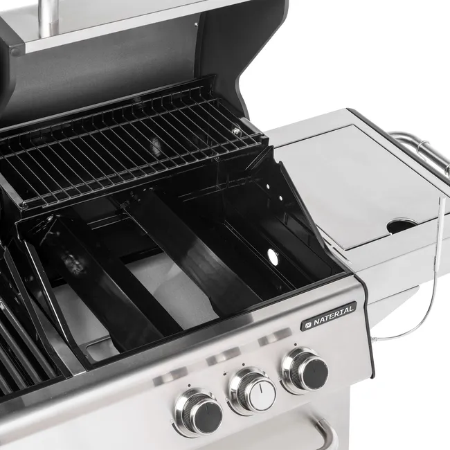 Grill gazowy Hudson marki Naterial to urządzenie klasy premium, zaprojektowane z myślą o miłośnikach grillowania, którzy cenią sobie wszechstronność i wygodę przygotowywania posiłków na świeżym powietrzu. Wyposażony w 4 główne palniki o łącznej mocy 14 kW oraz palnik boczny 3 kW, pozwala równocześnie przyrządzać różne potrawy w oddzielnych strefach temperatury, co daje pełną kontrolę nad procesem gotowania.