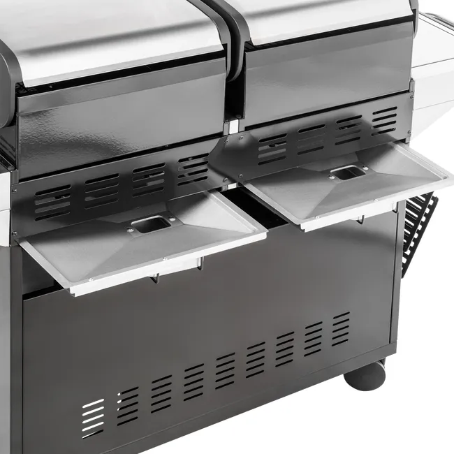 Wielostrefowe gotowanie: Dwie oddzielne komory umożliwiają grillowanie różnych dań w tym samym czasie, z zachowaniem odpowiednich temperatur dla każdej potrawy.