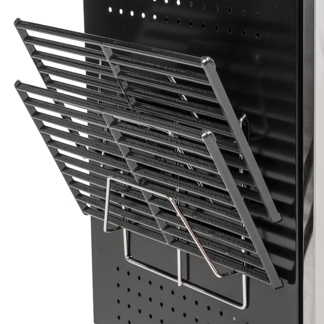 Różnorodne ruszty i płyty: Żeliwne ruszty oraz dodatkowe płyty umożliwiają grillowanie dużych kawałków mięsa, kiełbasek, burgerów i drobnych warzyw bez ryzyka wpadnięcia w szczeliny.