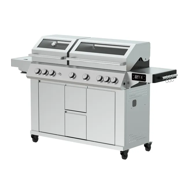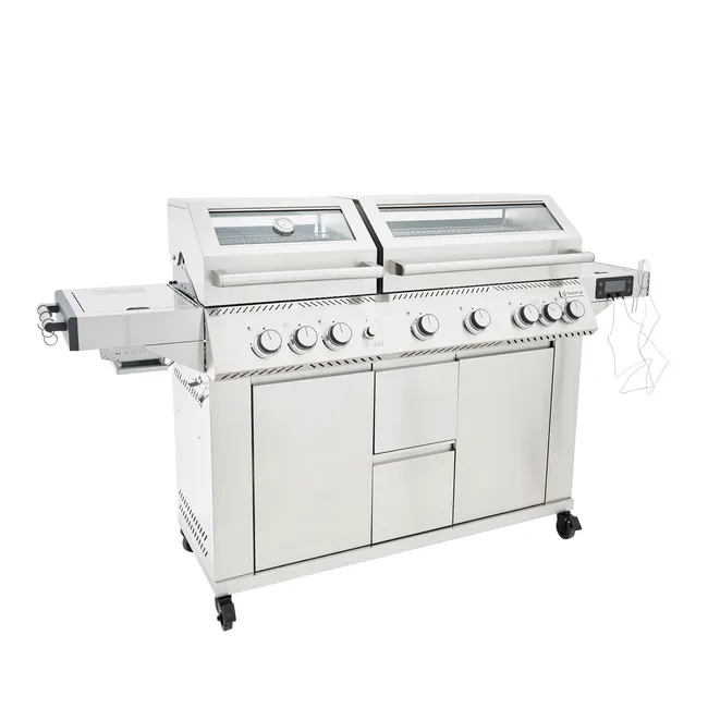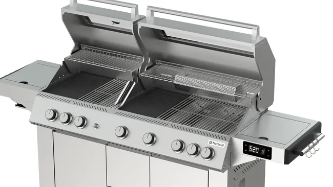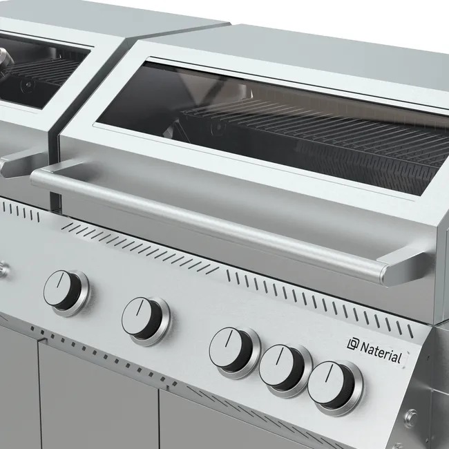 Naterial Upsilon to wszechstronny grill gazowy premium, wyposażony w 8 palników, który umożliwia różnorodne metody gotowania – grillowanie, pieczenie, smażenie czy przypiekanie potraw. Środkowe dwa palniki osiągają wysoką temperaturę, idealną do przypiekania i zatrzymywania soków w mięsie oraz warzywach, co zapewnia wyjątkowy smak przy każdym gotowaniu.