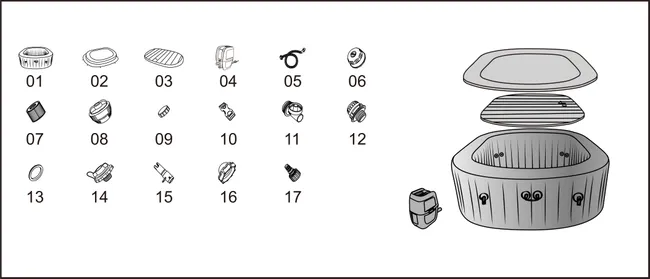 Jacuzzi ogrodowe Bestway 180×66 cm 60001 Miami, specyfikacja: 120 dysz powietrznych, 2-4 osoby, kolor czarny, 1 zestaw naprawczy, dystrybutor chemikaliów,