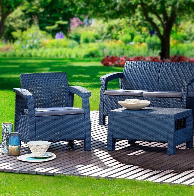 Meble do ogrodu NOVARA Keter pozwolą Ci zrelaksować się na świeżym powietrzu w komfortowych warunkach. Komplet wypoczynkowy składa się z