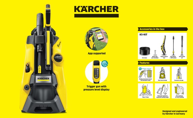 Myjka wysokociśnieniowa K 5 Power Control to maszyna z nowej linii urządzeń ciśnieniowych Karcher wprowadzonych do oferty w sezonie 2021. Urządzenie jest następcą popularnego modelu K 5 Full Control. W nowej myjce przeprojektowano między innymi korpus, ułatwiając przechowywanie wyposażenia i wydłużono aż o 2 m długość węża wysokociśnieniowego (teraz jest to 10 m), dzięki czemu użytkownik zyska większy zasięg pracy i komfort czyszczenia. Dodatkowym wsparciem i nowością jest również dedykowana aplikacja z managerem zastosowań, montażem, serwisem i statystykami dostępna do pobrania na smartfon. Dzięki aplikacji użytkownik uzyska kompleksową wiedzę na temat wyboru optymalnego sposobu czyszczenia dla wskazanego zadania (obiektu) z użyciem zarejestrowanych urządzeń i wyposażenia oraz szereg innych funkcjonalności. Myjka K 5 Power Control idealnie sprawdzi się podczas prac porządkowych wokół domu i w ogrodzie, do regularnego mycia pojazdów (samochodów, motocykli, rowerów), czyszczenia narzędzi i maszyn ogrodowych, czyszczenia tarasów, patio, grilla itp. W standardowym wyposażeniu urządzenia znajduje się pistolet wysokociśnieniowy Power Control z wyświetlaczem ułatwiającym dopasowanie ciśnienia do rodzaju czyszczonej powierzchni oraz dwie lance: Vario (ze strumieniem płaskim wysokociśnieniowym i strumieniem niskociśnieniowym do aplikowania detergentu) oraz lanca z dyszą rotacyjną do usuwania uporczywych zabrudzeń. Zastosowanie w myjce silnika indukcyjnego chłodzonego wodą pozwala na wydłużenie jego żywotności, zmniejszenie rozmiarów, a co za tym idzie – zmniejszenie wagi urządzenia oraz oszczędność energii, ponieważ nie jest potrzebne zasilanie wentylatora. Przedłuż gwarancję na to urządzenie do 5 lat ! Wszystkie nowe urządzenia wysokociśnieniowe marki Kärcher z linii Home&Garden zakupione przez konsumenta od dnia 01.07.2023 mają możliwość przedłużenia gwarancji do 5 lat! pod warunkiem zarejestrowaniu zakupionego urządzenia na stronie internetowej www.kaercher.com/pl/ w ciągu 3 miesięcy licząc od daty zakupu. Link do strony internetowej: https://www.kaercher.com/pl/serwis-i-uslugi/wsparcie-i-obsluga-klienta/przedluzenie-gwarancji/przedluzenie-gwarancji-myjki-cisnieniowe-h-g.html