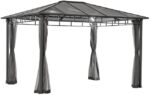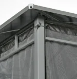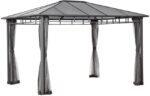 Pawilon ogrodowy Aurora to świetne rozwiązanie dla każdego, kto chce stworzyć elegancką i funkcjonalną przestrzeń na świeżym powietrzu. Z wysokością 260 cm oraz wymiarami 300×360 cm, prostokątny pawilon oferuje dużo miejsca, idealnego na spotkania towarzyskie, przyjęcia czy odpoczynek w ogrodzie. Solidna konstrukcja wykonana jest z malowanej proszkowo stali w kolorze stalowoszarym, co zapewnia trwałość i odporność na warunki atmosferyczne. Dach pawilonu zrobiony jest z poliwęglanu, który chroni przed deszczem oraz promieniami UV. Pawilon posiada cztery przesuwne moskitiery z poliestru, które dają dodatkową ochronę przed owadami. Możliwość montażu do podłoża pozwala na stabilne zamocowanie, co zwiększa bezpieczeństwo. Produkt objęty jest dwuletnią gwarancją.
