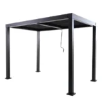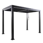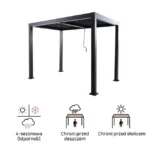 Pergola Clima wykonana jest z wytrzymałego aluminium i mocowana do podłoża za pomocą czterech stóp, co zapewnia stabilność nawet podczas burzy. Po zainstalowaniu pergolę można łatwo czyścić wodą z mydłem, używając węża ogrodowego, także na najwyższych elementach konstrukcji.