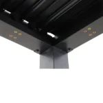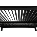Aluminiowe łopatki po przechyleniu tworzą lekki, chłodzący przepływ powietrza pod pergolą, pozwalając uciec gorącemu powietrzu. W przypadku deszczu zamknij całkowicie dach i zachowaj spokój – pergola wyposażona jest w system drenażowy odprowadzający wodę do podstawy konstrukcji. Pionowe ustawienie łopatek umożliwia dopływ światła i ciepła na patio i do wnętrza domu.