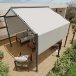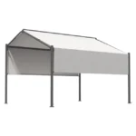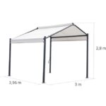 Konstrukcja pawilonu wykonana jest ze stabilnej stali, a pokrycie z poliestru gwarantuje trwałość i odporność na warunki atmosferyczne. Biały kolor w połączeniu z prostokątnym, geometrycznym kształtem nadaje lekkości i nowoczesnego charakteru, dzięki czemu pawilon doskonale komponuje się w nowocześnie zaaranżowanych ogrodach.