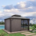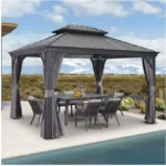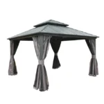 Konstrukcja odporna na próbę czasu – stalowe słupy i poprzeczki wykonane z ocynkowanej blachy stalowej o grubości 0,6 mm gwarantują stabilność i solidność. Aluminiowe żebra o wymiarach 56,6 x 46 x 1,1 mm oraz 40 x 20 x 0,8 mm dodają elegancji i wspierają całą konstrukcję. Dach z 0,4 mm ocynkowanej blachy stalowej chroni zarówno przed deszczem, jak i przed słońcem.