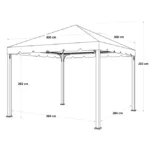 Pawilon ogrodowy Ysis to elegancka i funkcjonalna propozycja dla każdego, kto chce stworzyć w ogrodzie przytulną strefę relaksu. Jego kwadratowa konstrukcja o wymiarach 3 × 3 m zapewnia wystarczającą przestrzeń, by ustawić pod nim meble wypoczynkowe dla 4–6 osób.