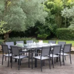 Zestaw ten jest idealnym uzupełnieniem mebli ogrodowych na letnie przyjęcia. Składa się ze stołu o wymiarach 140/200 cm, z nadstawką z blatami do sztaplowania, oraz 10 krzeseł do sztaplowania, jeśli potrzebujesz więcej miejsca na zewnątrz. Praktyczny, atrakcyjny i funkcjonalny – ten model VENEZIA ma to wszystko. Meble ogrodowe wykonane są z wytrzymałej, lekkiej aluminiowej ramy i pokrycia siedziska Textilene dla optymalnego komfortu. Meble są odporne na promieniowanie UV, dzięki czemu pozostają trwałe i wyglądają jak nowe przez wiele lat.