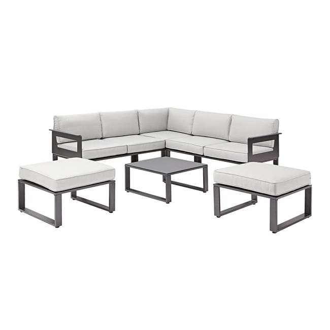 Zrelaksuj się w ogrodzie z modułowym zestawem narożnych mebli ogrodowych Naxos II. Ten praktyczny i stylowy zestaw obejmuje narożną sofę,