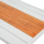 Meble wykonano z lekkiego, ale wytrzymałego aluminium, pokrytego powłoką heat transfer, nadającą im wygląd naturalnego drewna. Technologia ta zapewnia wysoką odporność na korozję i zmienne warunki atmosferyczne, dzięki czemu zestaw Auro zachowa elegancki wygląd przez wiele sezonów.