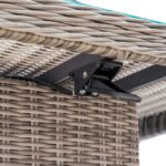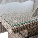 Aluminiowa rama mebli zapewnia stabilność i nie ulega odkształceniom, a ręcznie wyplatany rattan podkreśla stylowy wygląd i jest odporny na działanie słońca oraz wilgoci. Meble łatwo utrzymać w czystości, co zwiększa wygodę użytkowania. Blat stołu z hartowanego szkła jest odporny na zarysowania i zapewnia trwałość na długie lata.